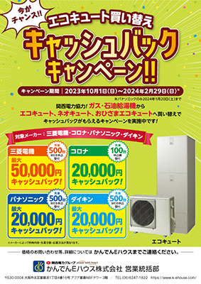 関西電力協力!エコキュート買い替えキャッシュバックキャンペーン